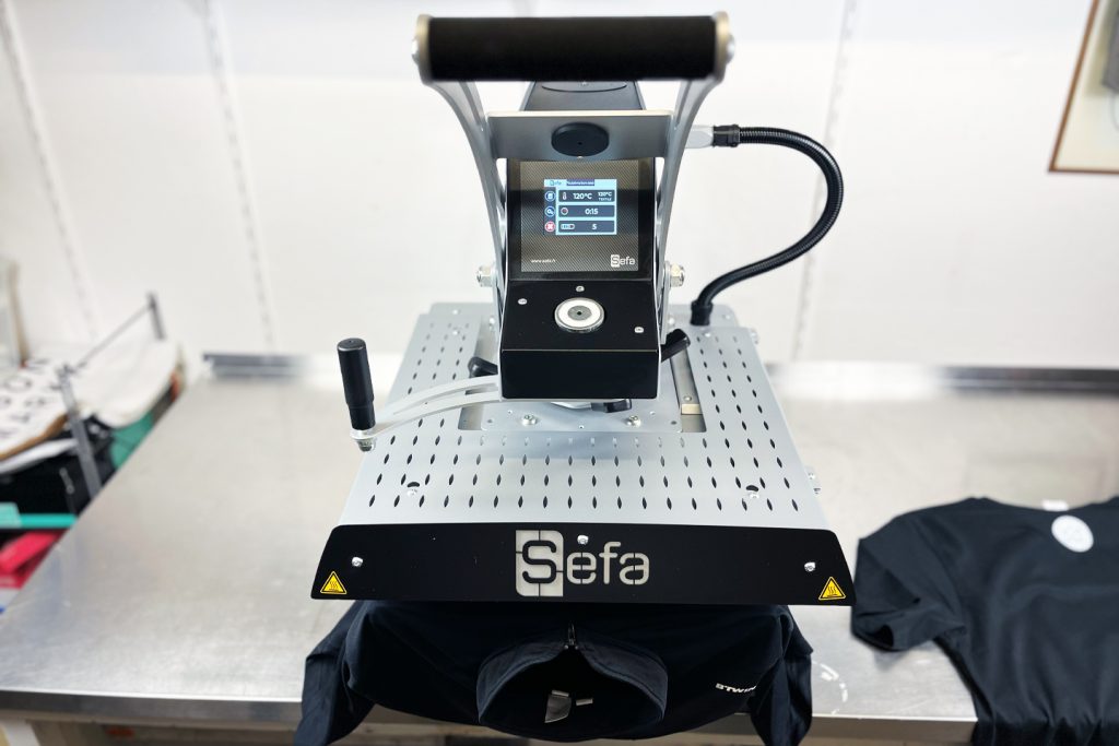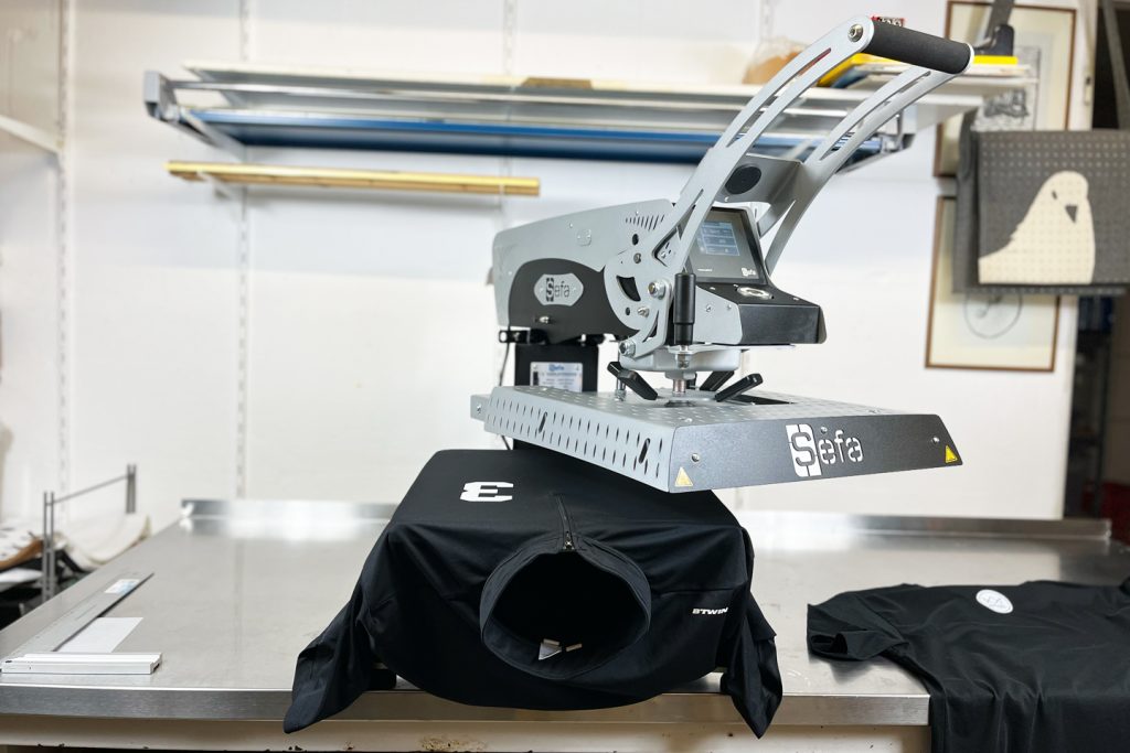 Siebdruck ist besonders langlebig und wirtschaftlich bei größeren Stückzahlen. Vor allem bei ein- bis zweifarbigen Motiven. Inhouse setzen wir dieses Verfahren für ausgewählte Kleinserien ab ca. 20 bis etwa 50 Teilen um. Größere Produktionen realisieren wir über Partnerdruckereien.
